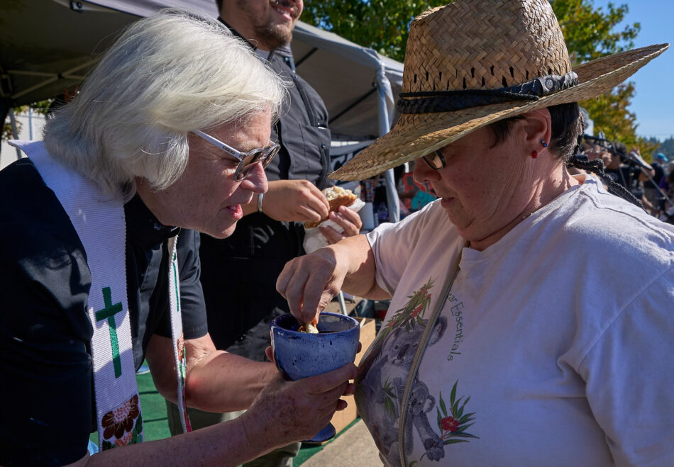 Bishop Cedrick Bridgeforth led participants in celebrating communion. Among those assisting was Lyda, on the left.