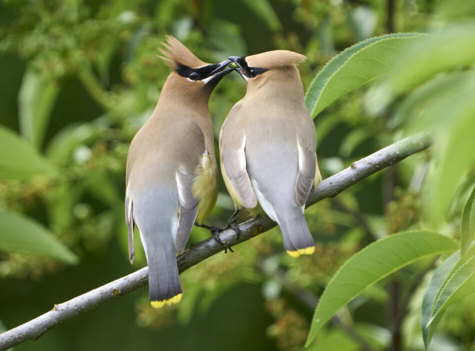 In April I celebrated the annual return of Cedar waxwings (Bombycilla cedrorum)–one of the most beautiful birds around–to an Osoberry bush (Oemleria cerasiformis) in my backyard. They love to play with their food.
