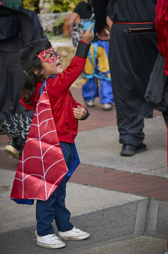 On Halloween, when we went to public celebration downtown, he ran around excitedly throwing webs onto complete strangers.